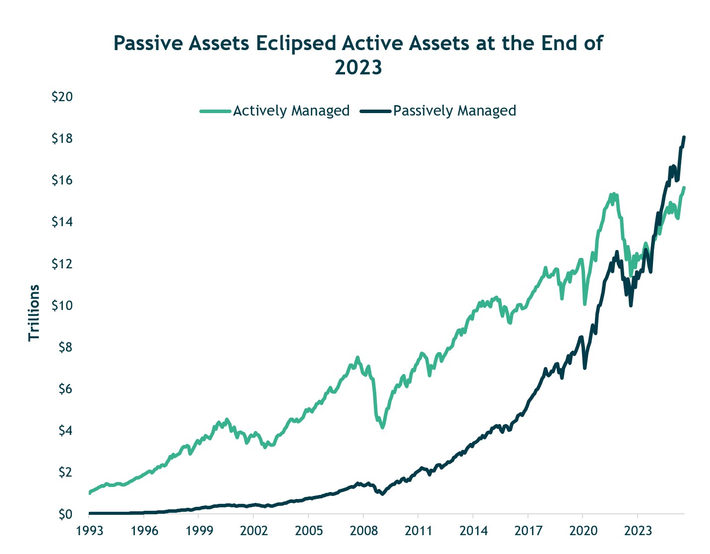 - Morningstar data shows that as of late 2023, passive assets overtook active assets for the first time. These consistent inflows, which are often valuation-agnostic, provide some support for higher multiples.