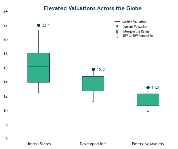- Valuations remain heady across the globe—but relative value can be found overseas.
